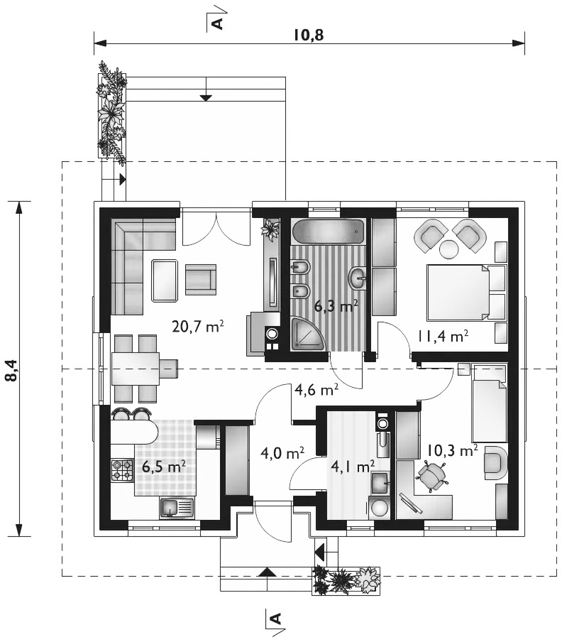 Zahvaljujući savremenim montažnim tehnikama gradnje, ova kuća ne samo da se brzo i efikasno postavlja, već je i energetski efikasna, lako se održava i prilagođava različitim klimatskim uslovima. Korišćeni materijali visokog kvaliteta obezbeđuju dug vek trajanja i osećaj topline doma čim zakoračite unutra.
