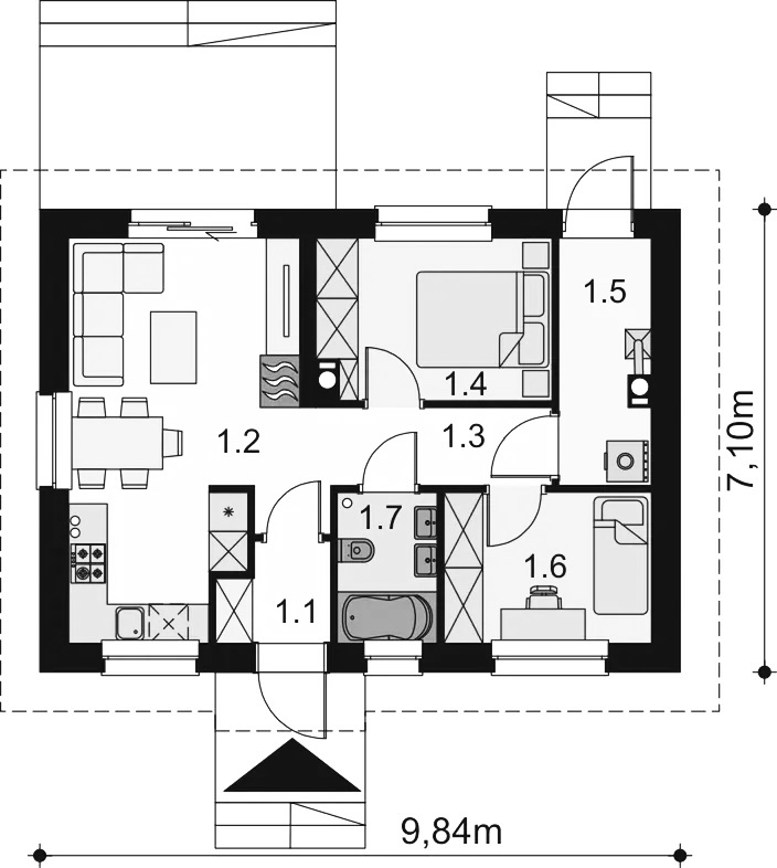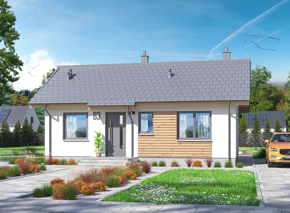 Čista arhitektura, ravne linije i funkcionalnost na svakom koraku. Kuća je idealna za urbane sredine, ali se jednako dobro uklapa i u prirodne pejzaže. Dostupna s mogućnošću dodavanja nadstrešnice ili letnje kuhinje.